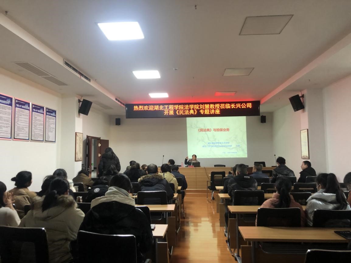 2020年12月30日下午,長(zhǎng)興公司組織開(kāi)展《民法典》專題學(xué)習(xí)講座。本次活動(dòng)邀請(qǐng)了湖北工程學(xué)院政法學(xué)院法學(xué)副教授劉慧同志作《民法典》專題講座。公司領(lǐng)導(dǎo)班子成員、中層以上干部、黨員干部職工共40人參加了本次活動(dòng)。